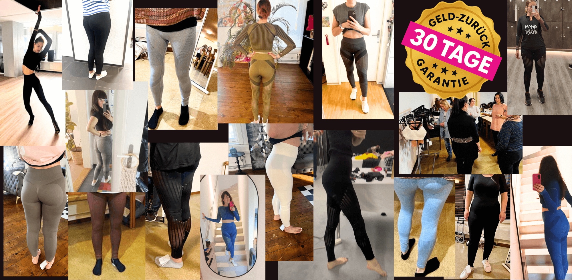 Viele Kundinnen bezeichnen sie auch als Push-Up-, Bodyshaping- oder Slimming-Leggings – weil sie drei Effekte in einem Produkt vereint: