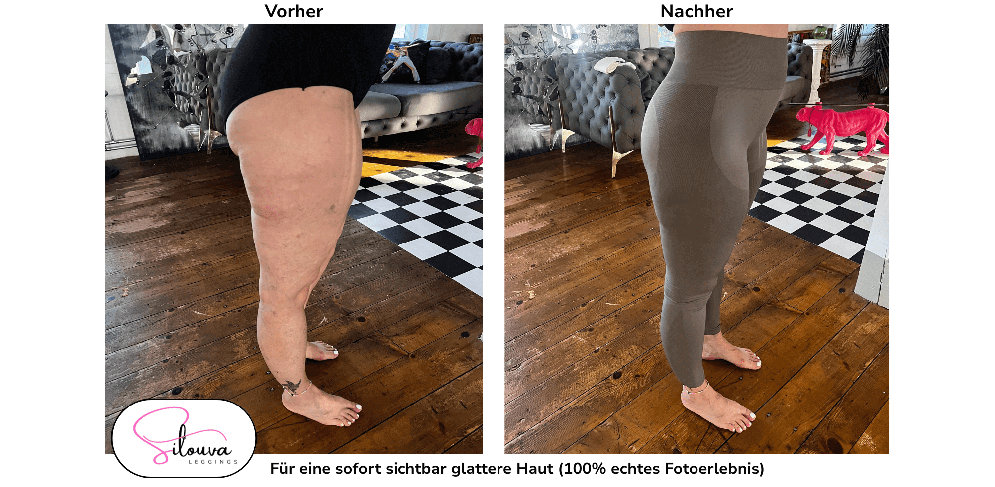 Die Sillouva Leggings zaubern Cellulite nicht einfach weg, aber sie verbessern das Erscheinungsbild sofort sichtbar.