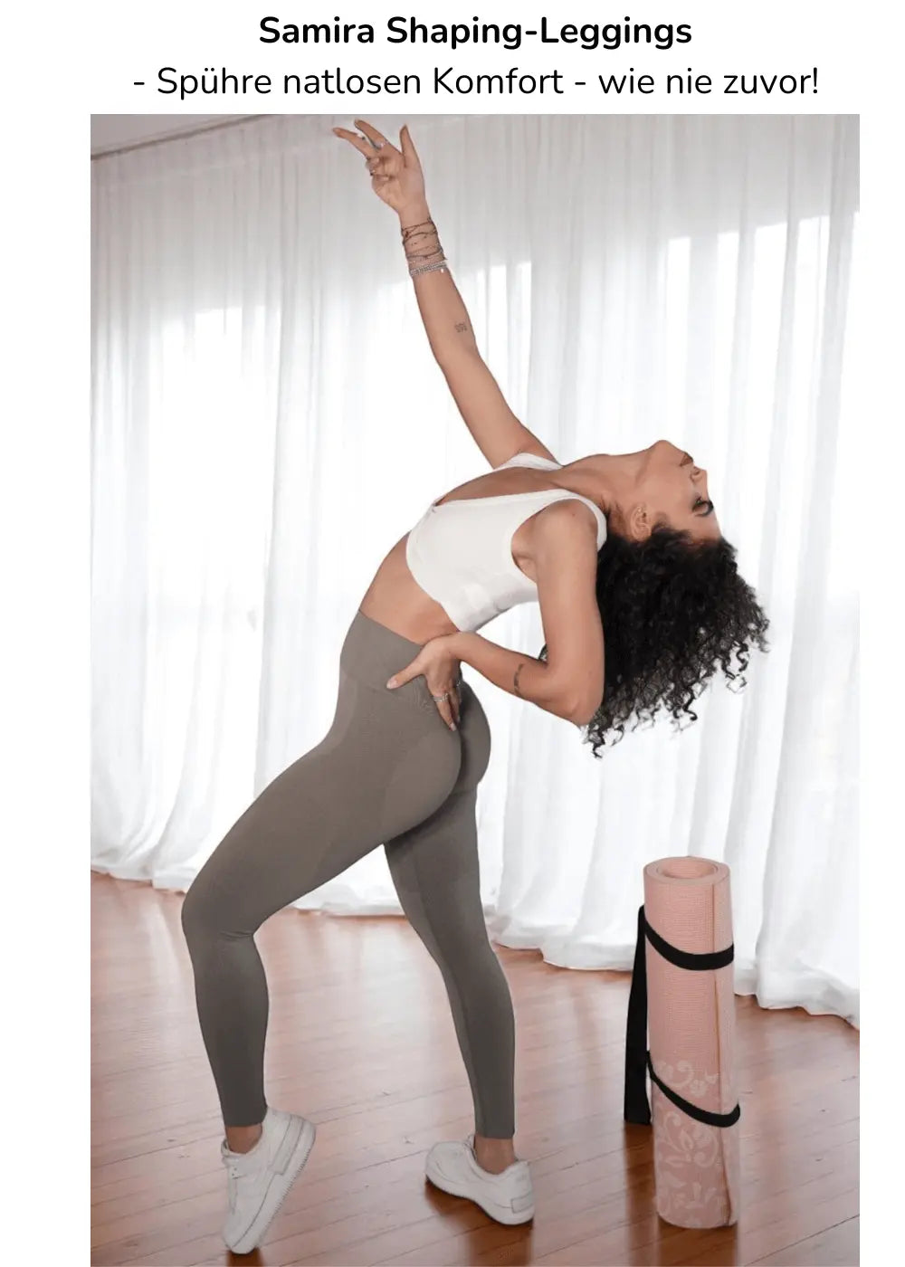 Viele Kundinnen bezeichnen sie auch als Push-Up-, Bodyshaping- oder Slimming-Leggings – weil sie drei Effekte in einem Produkt vereint: